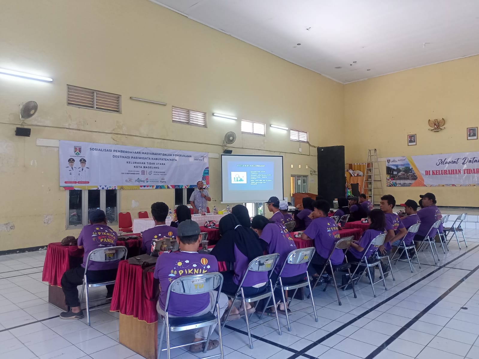 <p> Kelurahan Tidar Utara sudah mempunyai Desa Wisata Tidar Dudan yang sudah ditetapkan melalui Keputusan Kepala Dinas Kepemudaan Olahraga dan Pariwisata Kota Magelang Nomor : 556/591.1/340/KEP/2020 Tentang Penetapan Desa Wisata Kota Magelang Tahun 2020 dan Pokdarwis Kadang Bebrayan. Dalam pengembangannya masih diperlukan peningkatan, sehingga perlu dilakukan mapping potensi wisata di wilayah Kelurahan Tidar Utara supaya dapat bersinergi mengembangkan kegiatan wisata. Dinas Kepemudaan Olahraga dan Pariwisata mengadakan Sosialisasi Pemberdayaan Masyarakan dalam Pengelolaan Destinasi Pariwisata Kabupaten/Kota Tahun 2025 dilaksanakan di Balai Kelurahan Tidar Utara pada tanggal 1 s/d 3 September 2025 diikuti perwakilan dari pengelola Desa Wisata Tidar Dudan dan perwakilan masing-masing RW dari Kelurahan Tidar Utara. Kegiatan tersebut mendatangkan narasumber yang kompeten dalam pariwisata diantaranya Bapak Wakil Wali Kota Magelang dr. Sri Harso, M.Kes, Sp.S, dosen Universitas Tidar Magelang Kenyo Kharisma Kurniasari, Heri Nurhadi, M.Mpar dan Daniel Bayu anggara, M.M Praktisi dan Akademisi bidang Pariwisata</p>