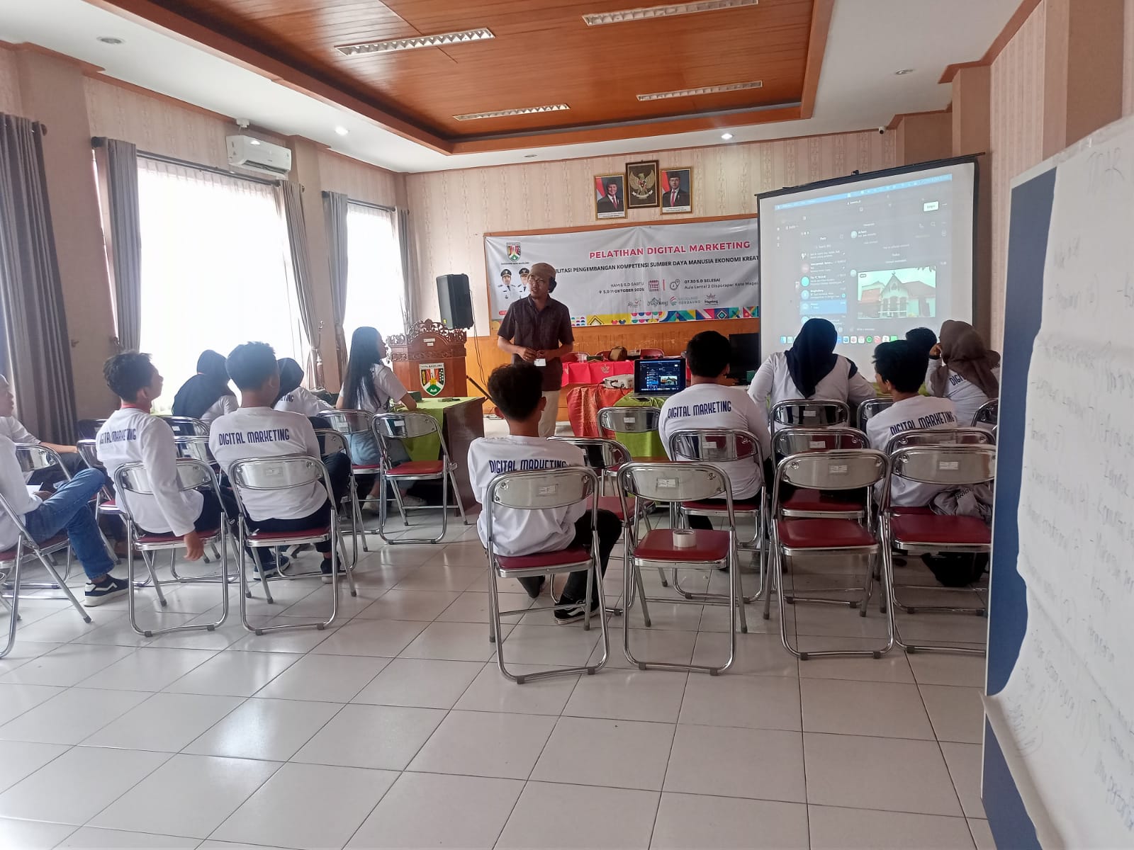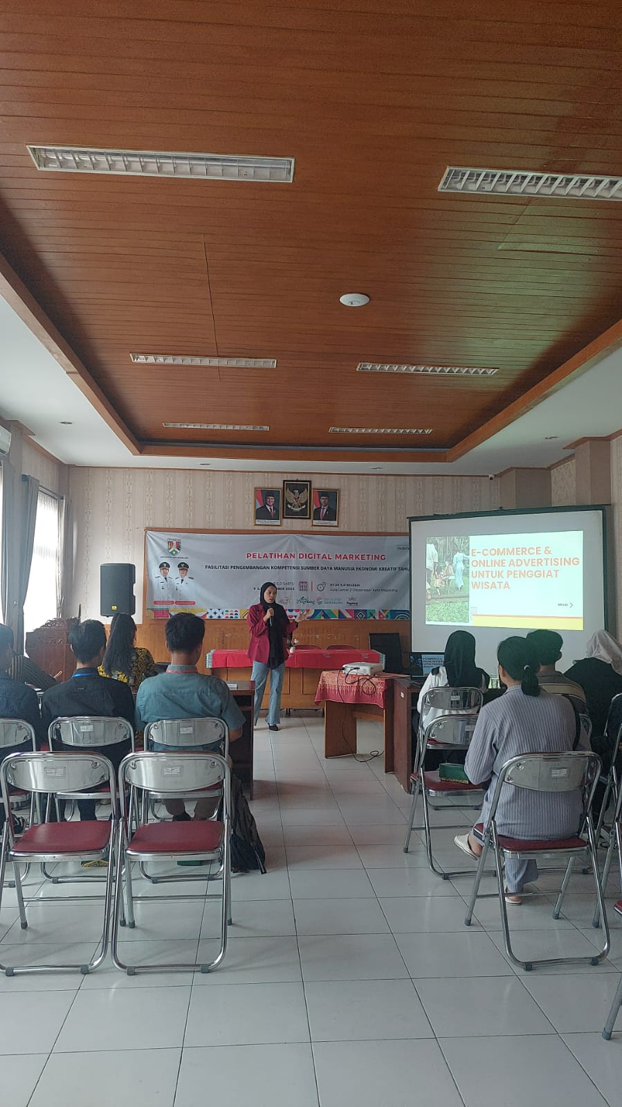 <p> Sub kegiatan Fasilitasi pengembangan kompetensi sdm ekonomi kreatif berupa pelatihan digital marketing untuk pelaku ekraf khususnya untuk pengelola (admin medsos) destinasi pariwisata di kota magelang dari hari kamis sampai sabtu tanggal 9 sampai 11 oktober 2025 di aula lantai II Disporapar kota magelang</p>
